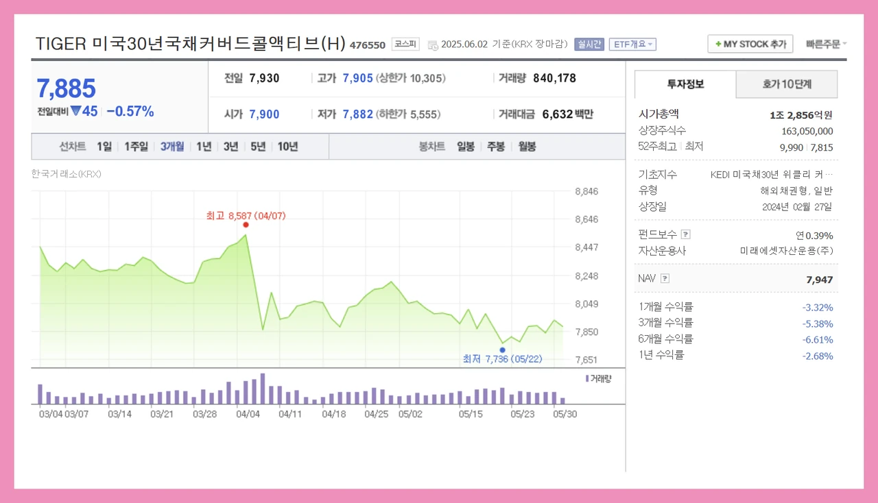 | TLT, 미국채선물 ETF | 미국채권 | 美20년+ 국채, 금리인하 기대 | 안전, 포트 변동완화 |