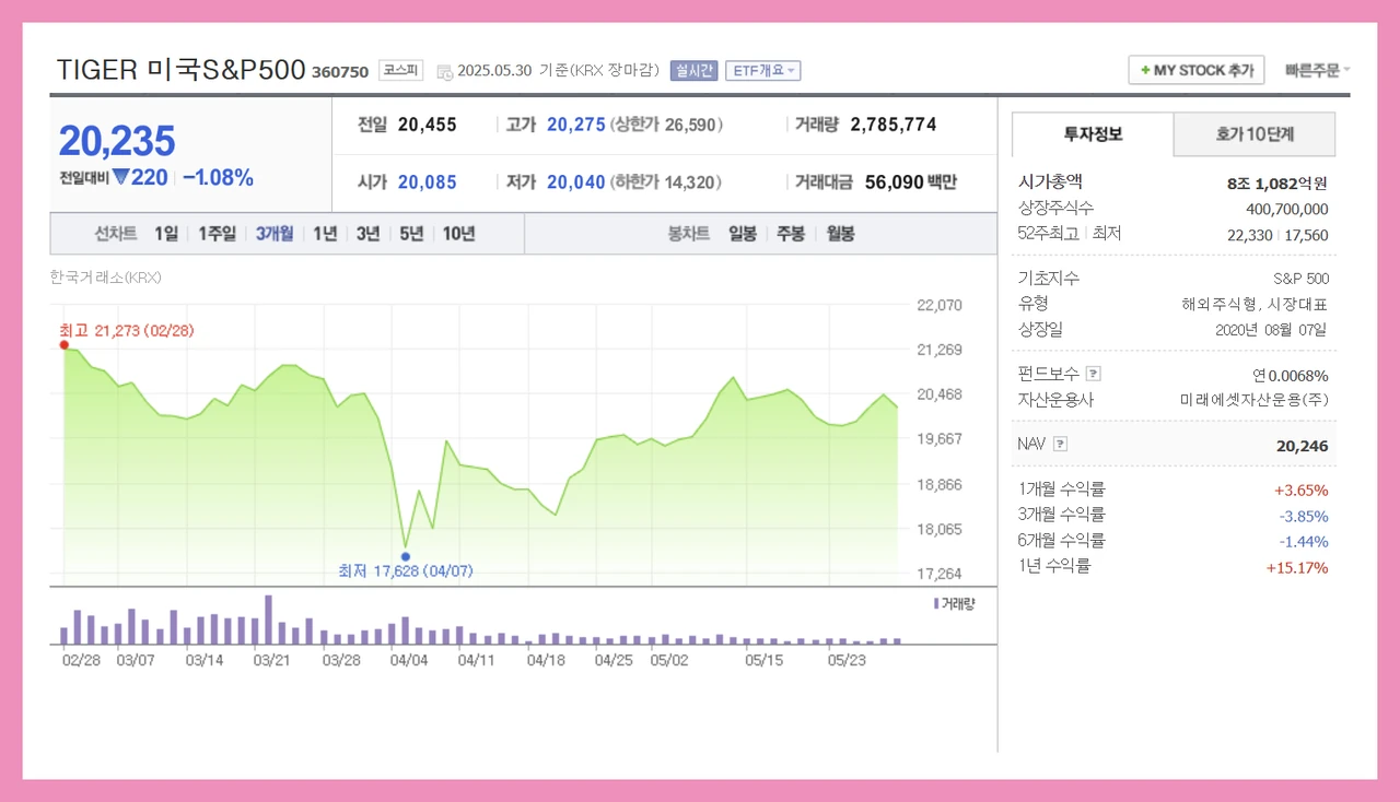 - TIGER 미국S&P500TR(H) ETF: 동일한 인덱스 구조에서 환헤지 적용, 2025년 달러 약세 전망에 안정적.