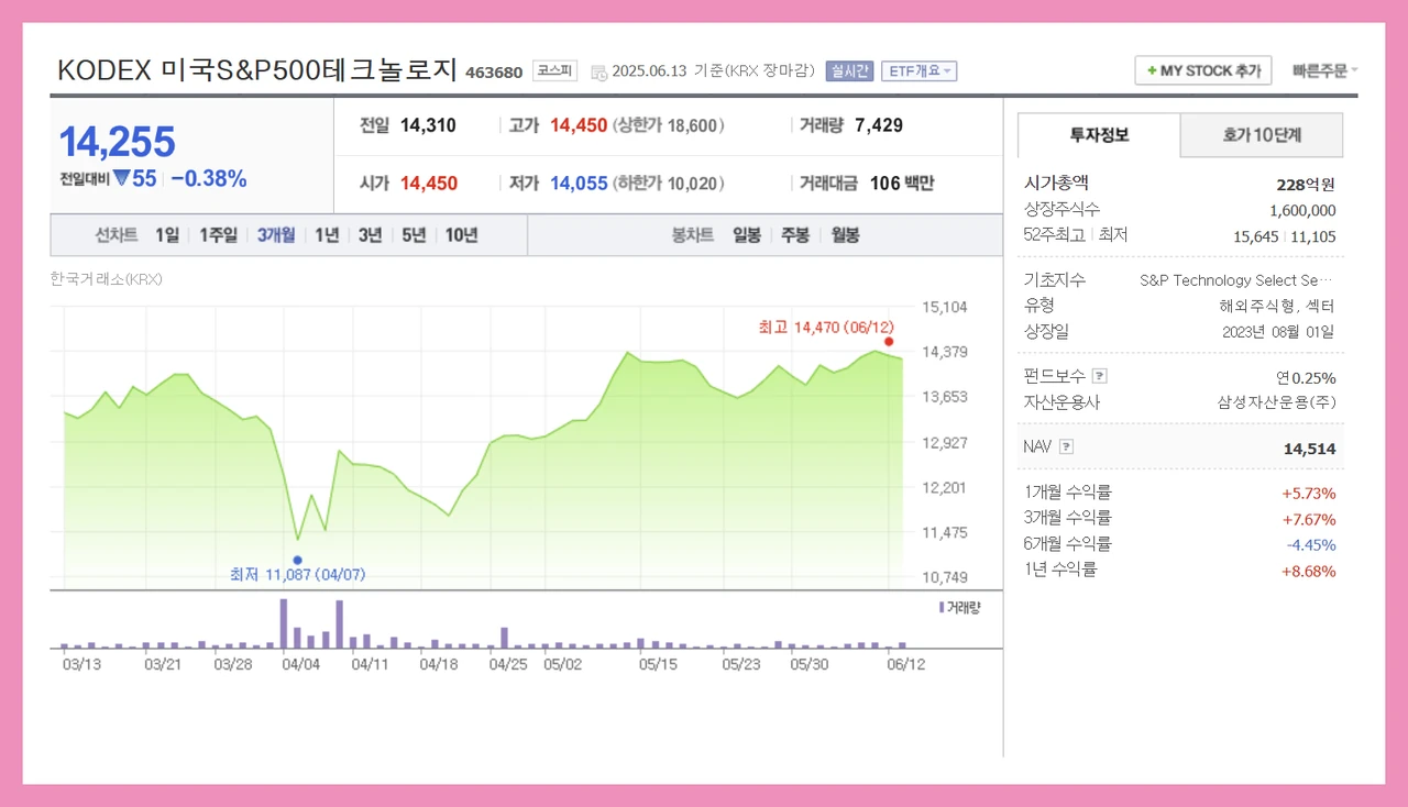 - 리밸런싱 전략 용이: 분기별로 기술주 과열 또는 침체 시 비중 조절. 시장 상황 맞춤 대응 가능.
