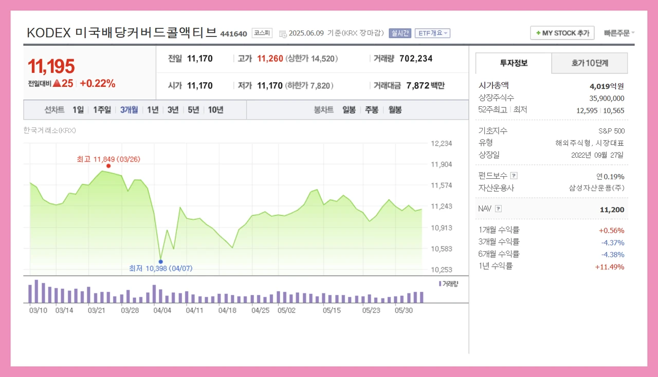 - KODEX 미국배당커버드콜액티브: S&P500 우량주 기반, 옵션수익 추가, 세제 면에서 국내 최고수준